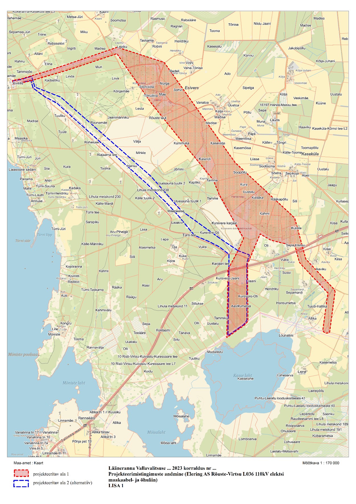 Projekteerimistingimuste andmise avatud menetlus (Rõuste-Virtsu 110 kV elektriliin)